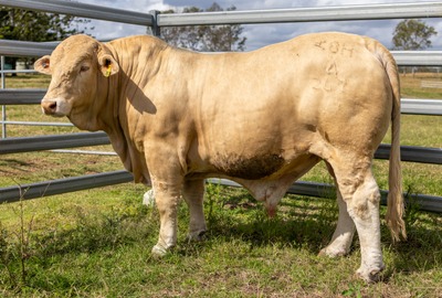 ELDERS DOB: 04/10/2023 23 Mths Tattoo: U267 Poll/Scurred Cream Brand: LAZY LETTER A 8H Grade: C6 Sire: HUNTINGTON QUIRKY (P) (C5) Dam: HUNTINGTON DESIREE S253 (P) (C5) Notes: Creamy Polled bull with tremendous depth of flesh, massive hindquarter, extremely good top line, great temperament. Great weight for age. |